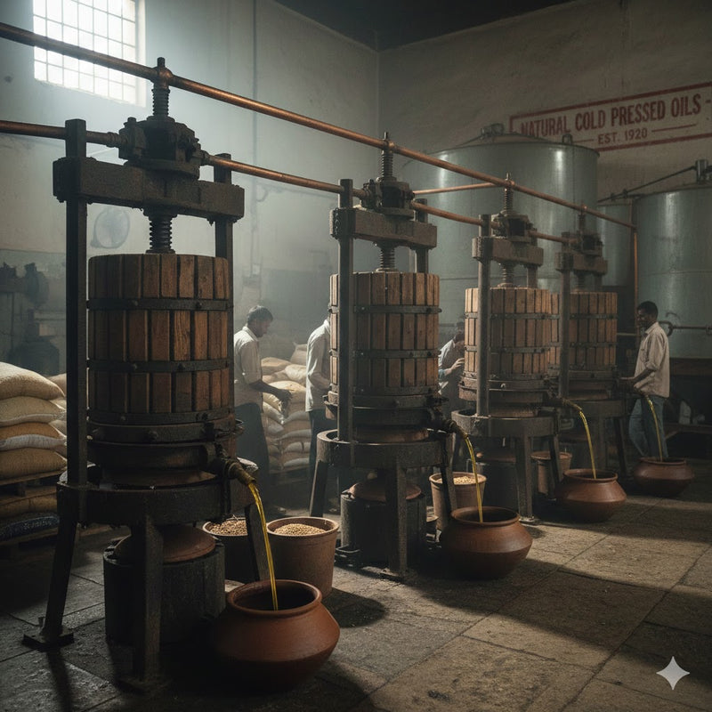 Traditional cold-pressed groundnut oil crafted with care, preserving natural nutrients and authentic flavour for healthy cooking